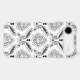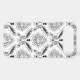 A vintage style decorative damask surface pattern influenced by rococo classical design in black line and leaf fill details on a white background.