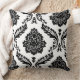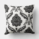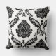 Rococo Damask Off-Set Pattern Black on White Cushion