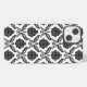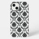 A vintage style decorative damask surface pattern influenced by rococo classical design in black detail on a white background.
