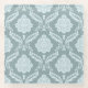A vintage style decorative damask surface pattern influenced by rococo classical design in duck egg blue color detail on a teal background.