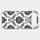 A vintage style decorative damask surface pattern influenced by rococo classical design in black and grey details on a white background.