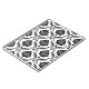 A vintage style decorative damask surface pattern influenced by rococo classical design in black and grey details on a white background.