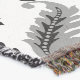 A vintage style decorative damask surface pattern influenced by rococo classical design in black and grey details on a white background.