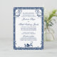 Rococo Floral Navy Blue White Wedding Invitation
