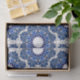 Ornate rococo inspired patterns in hues of indigo, inspired by the tradition of using the indigo plant dye, derived from the plant Indigofera tinctoria and related species, in vintage and antique textiles.