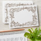 Mocha brown monochrome theme with modern typography. Inside features Rococo floral flourish  in mocha on white. Outside front floral frame.