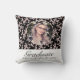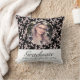 Rococo Pink Black Graduate Photo Graduation Throw Pillow. Elegant graduation design with rococo pink and black ornament pattern and a custom photo in an oval frame. Great graduation keepsake gift for graduate, parents, grandparents or friends.