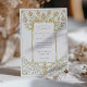The reverse side showcases a symmetrical garden motif formed by intertwined leafy tendrils and floral buds in a refined golden lattice. With its historical charm and botanical whimsy, this design is perfect for weddings inspired by nature, heritage, or European elegance.