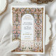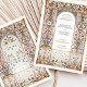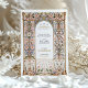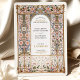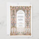 This exquisite wedding invitation features an intricate Rococo-inspired filigree arch adorned with elegant floral motifs in soft pastel hues of blush, blue, and gold. The delicate ornamental patterns, reminiscent of European palatial decor, create a timeless and sophisticated aesthetic, perfect for elegant and romantic weddings. The refined typography complements the ornate frame, enhancing the grandeur of this design. Ideal for couples seeking a luxurious and artistic wedding stationery that reflects old-world charm and regal elegance.