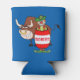 Rodeo clown inside a barrel that can be personalised with your name and a bull behinf the clown design on koozie