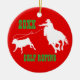 White rodeo cowboy calf roping graphic on round Christmas Ornament ... customise / personalise it with year and tag line.