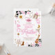 Saddle up for a fun-filled celebration with this rodeo-themed first birthday invitation! Featuring playful Western illustrations like cowboy hats, boots, lassos, cacti, and cow print accents in pink and brown, this design sets the perfect tone for a festive party. The bold fonts and colorful layout make it easy to customize with your childs details, ensuring guests are excited to join the adventure. Ideal for little cowgirls and cowboy-inspired birthday parties, this invitation blends charm and creativity for a memorable first rodeo.