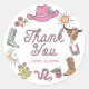 Rodeo Pink Western Cowboy Birthday Thank You Classic Round Sticker