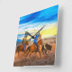Rodeo Team Roping Sunset Corral Rustic Western Square Wall Clock