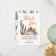 Cute boy's western themed first birthday thank you card featuring a cactus desert landscape, rope style word one, and hand drawn horseshoe. Ideal for a western themed first birthday party.