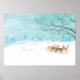 Roe deer in winter. Book illustration. A group of roe deer steps on the freshly fallen snow under an old oak tree. Winter landscape painted in colours that illustrate a cold winter day in nature. Roe Deer winter snowy forest landscape.