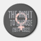 Fridge magnet marking the overturning of Roe v Wade by the current Supreme Court, features grunge style "The right to choose. 1973-2022" text in grey with light pink female symbol on charcoal background.