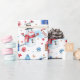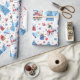 Whimsy 30" x 6ft wrapping paper roll featuring a holiday pattern of a snowman family, blue trees, wrapped gifts, candy and more with personalised name. Easily change the name to make it yours using the Template provided. Printed on heavyweight 60 lb. uncoated matte paper. The rolls are packaged nicely for shipping and are crease-free. See "About This Product" at side for more information and length package guide. HIGH reviews.