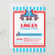 Celebrate your birthday party with our Blue Roller Skate Sport design. Featuring roller skating shoes on blue and red stripes pattern. This trendy design is perfect for roller disco or glow party. A perfect Roller skating party invitations for your little boy's retro roller skating party, roller skating party, glow roller skating party.