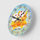 The clock did not take as long to arrive as I thought it might and was extremely well packaged. I didn't do the measurements so I didn't realize it is a little smaller than the average clock but that does not matter (just make sure you check if that's important to you).It is really nifty! It seems very solid and well made not flimsy at all. It has been going well and has kept good time in its few weeks on my wall. Nice product. Gets noticed too! Nicer in real life than the picture but true to the picture