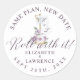 Sometimes you just have to roll with it. Our beautiful elegant covid themed save the date sticker is perfect to announce your new wedding date. Our design features our hand-painted watercolor elegant toilet paper gold stand and toilet paper roll with an arrangement of beautiful violet-purple watercolor florals. "Roll with it" is designed with beautiful elegant calligraphy. Add your monogram to the toilet paper roll for an extra personal touch. Trtwork created by Moodthology Papery