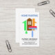 Design features a creative colourful home being painted by the roller brush. At the top of the card lies the blue job title "home painting". Southwards to the base of the card is your prestigious name, a slogan caption to publicise your services and the contact details. You can change the caption remarks to both the job title and the slogan to suit your own service needs.