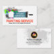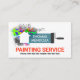 Cover features a home silhouette inside a colourful paint splatter graffiti wall. The wall is about to be painted by a roller brush. Inside the blue paint stripe lies your prestigious name. Near the base of the card is the business name alongside its contact details.