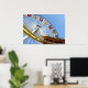 Are you a fan of amusement parks? Love ferris wheels or taking a ride on a roller coaster? If so, then this poster will be right at home hanging on one of your walls. It features a photo of roller coaster riding past a Ferris wheel at the Santa Monica Pier in California.