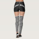 Another funny pair of leggings by JessicaAmber! These full-length leggings feature legs in a medium white or beige skintone. These legs are wearing black ruched booty shorts, and black and white striped over the knee high socks. You can customise the words on the butt of the shorts. Use these leggings for roller derby or casual cosplay. ••• For more cheeky (literally!) leggings , visit my store Zazzle.com/JessicaAmberArtist ••• For custom orders, message me on Zazzle