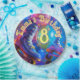 A cute design featuring roller skates, balloons and confetti. A popular theme they will love.