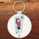 A waitress on roller skates holding a serving tray. This design looks really effective on this Keychain