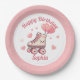 Roller Skating Pink Glitter Girl's Birthday Party Paper Plate