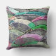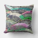 Multicolored throw pillow with a distressed textured watercolor design: an abstract painting depicting soft rolling hills. This colourful pillow is a great way to add some fun colour and texture to a room.