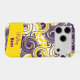 Here to personalise, is your curly and colourful case adorned with a broken purple and white spiral digital art design over a deep yellow background. Fill in the template field with your information, remove unwanted text and text ribbon or click "Customise it!" to change the font style, size, and colour.