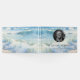 Elegant watercolor celebration of life/memorial/funeral photo guest book featuring a scenic view of rolling waves towards a sandy beach.