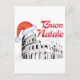 Buon Natale t-shirts, clothes, cards, bags and Italian Natale holiday gifts with picture of the Roman Colosseum wearing a Santa Claus hat with snow falling about.