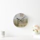 The clock did not take as long to arrive as I thought it might and was extremely well packaged. I didn't do the measurements so I didn't realize it is a little smaller than the average clock but that does not matter (just make sure you check if that's important to you).It is really nifty! It seems very solid and well made not flimsy at all. It has been going well and has kept good time in its few weeks on my wall. Nice product. Gets noticed too! Nicer in real life than the picture but true to the picture