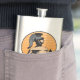 The product is a good size and came exactly as it was pictured. The lid is not attached to the flask, which could be dangerous on drunken nights... The print came out surprisingly well and looks very sharp. Would definitely recommend.