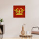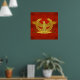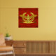 A Roman golden eagle on a background of ancient red, wreathed in victory and bearing thunderbolts. SPQR.