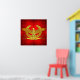 A Roman golden eagle on a legionary red background, wreathed in victory and bearing thunderbolts. SPQR.