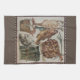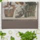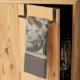 A kitchen towel with the 2nd century Roman mosaic reproduction of Seafood, fowl and vegetables in a cupboard. From a villa at Tor Marancia, near the Catacombs of Domitilla.