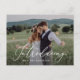 This design features a flowing romantic script overlay to showcase your wedding image.