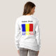 Personalised, long sleeved, women's t-shirt features the red, yellow, and blue Romanian flag tricolor with the word ROMANIA below, in the colours of the flag. Personalise with a name in the space provided for a special look. Or, create a customised gift by adding someone else's name. Make an impression at your next Romanian family reunion.