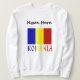 The red, yellow and blue Romanian flag tricolor with the word ROMANIA below, in the colours of the flag. Personalise with your name in the space provided for a special look. Or, create a customised gift by adding someone else's name.