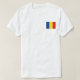 The front of this t-shirt bears a small Romanian flag with its familiar blue, yellow and red vertical bands, while the back displays a relief map of Romania. Available on t-shirts, sweatshirts, polos, long-sleeves and more.