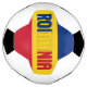 Romania Flag Patriotic Soccer Ball with the word "Romania" infused with the pattern and colours from the national flag displayed in the middle of the printable space. Background is covered in the combination of the colours from the Romania national flag. This soccer ball is not only adorable present but also the perfect requisite for a relaxing game of football or soccer. © 2022 CountriesOfTheWorld