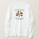Personalised long sleeve women's t-shirt features the flags of Romania, Ireland and United States of America (USA) in various leaves of this shamrock, designed to celebrate Romanian holidays, St. Patrick's Day and 4th of July. Above are the words THREE CULTURES. Below, ONE YOURNAME. Words are in dark green, Celtic style, circular letters. Add your name to the correct spot for a personalised look. For a customised gift, just add someone else's name.