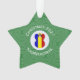 This angel is dressed in the red, yellow, and blue tricolor Flag of Romania on a star shaped ornament for holiday and Christmas decor. The Romanian Flag Christmas Angel is found inside a circle of white squiggly squares. The background is green squiggly squares. Add your own text or personalise with a name and year.