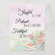 Embark on a journey of positivity and inspiration with this charming postcard, featuring the encouraging message from Romans 12:12. 'Be joyful in hope, patient in affliction, faithful in prayer.' This beautifully crafted watercolor-style design, adorned with a delightful bouquet of flowers, books, and delicate script, creates a warm and inviting atmosphere.