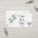 Inspirational quote scripture business card depicts a beautiful watercolor floral design with blue and pink leaves and features Bible Verse Romans 12:12, "Be joyful in hope, patient in affliction, faithful in prayer."_